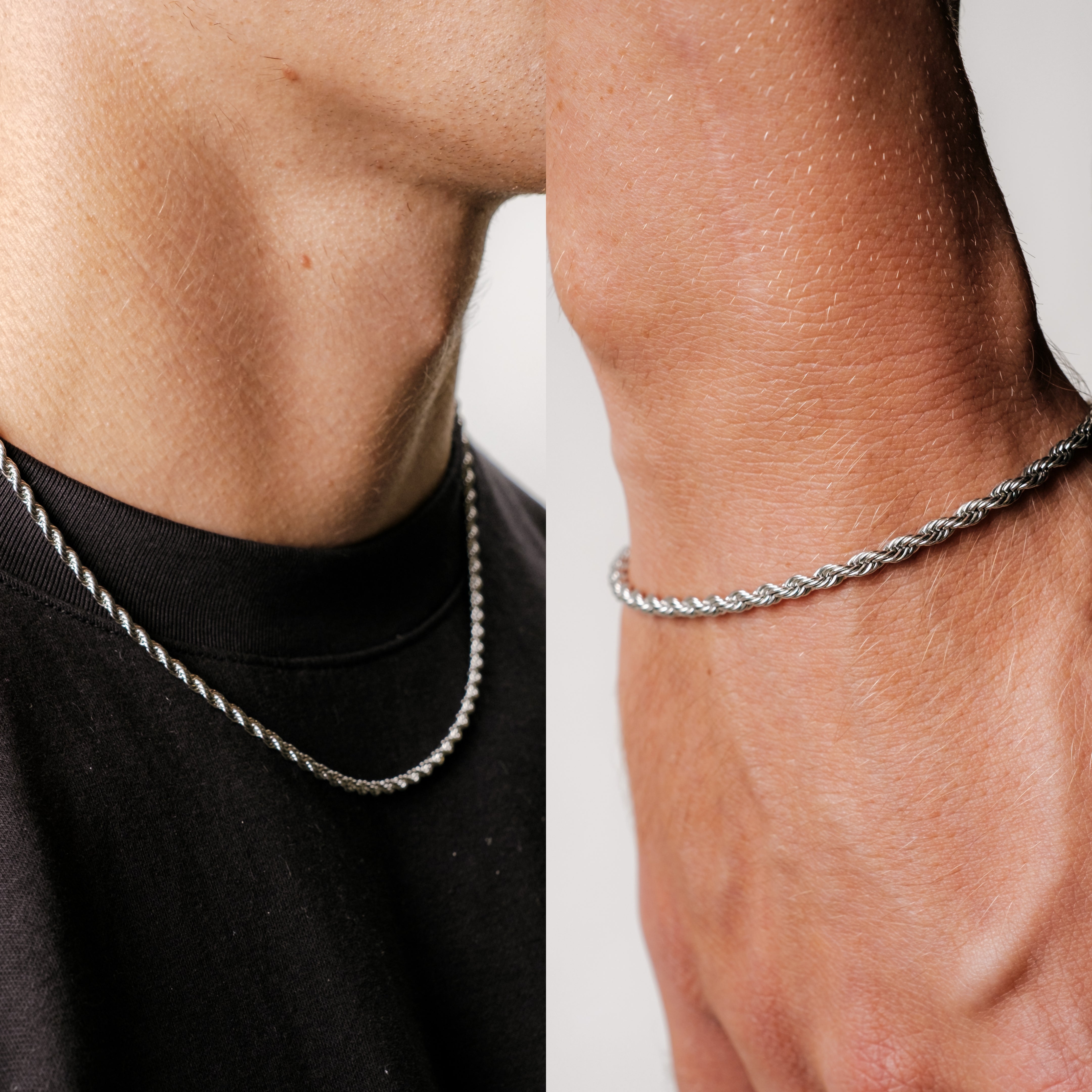 Bundle: Rope Bracelet + Chain 3MM (Silver Plated)
