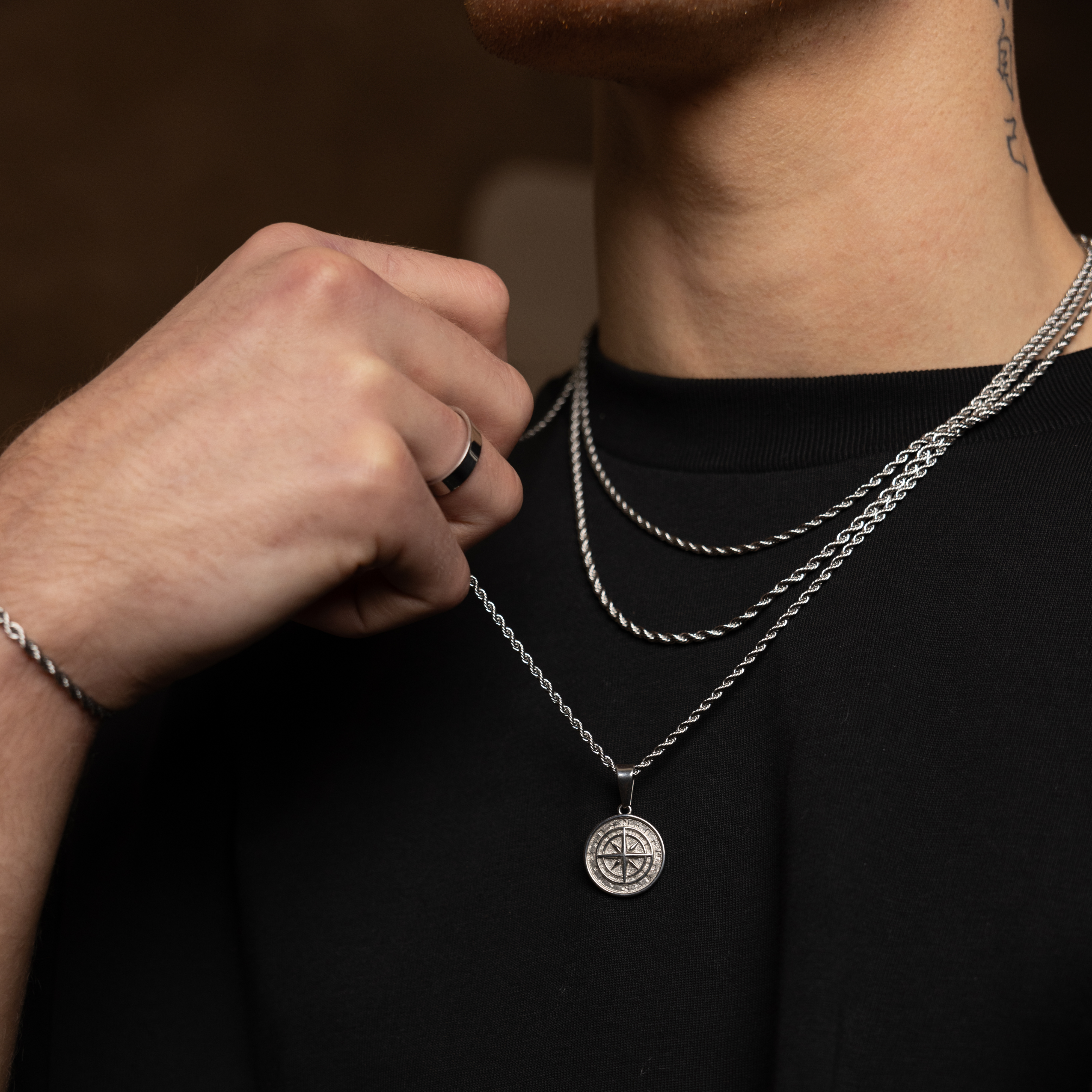 The model wears a 50cm chain