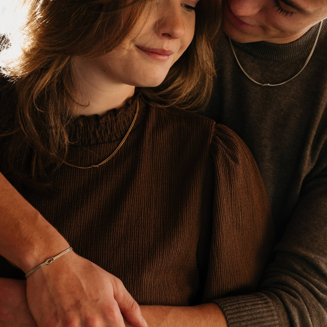 Onze sieraden zijn gemaakt van premium 316L roestvrij staal, een van de sterkste en meest duurzame legeringen die beschikbaar zijn. Dit materiaal verkleurt of vervaagt niet en is zelfs duurzamer dan zilver, goud of platina. Het zal je huid niet groen kleuren en verliest zijn glans niet.
